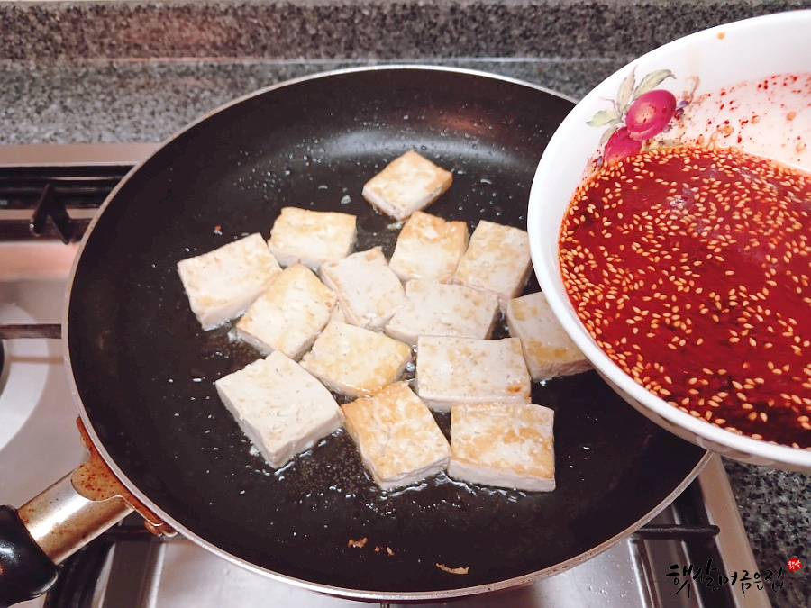 안녕하세요^^ 햇살머금은집이랍니다. 이번주 주말까지 춥다고 하니 꽁꽁 언 요즘 우리 이웃님들 따뜻하고 맛있는거 많이 챙겨 드시구요 건강 잘 챙기세요. 오늘은 들기름 향이 솔솔 부서지지 않고 양념장이 쏙 배서 너무 맛있는 두부조림 만들기 해 보려구요.