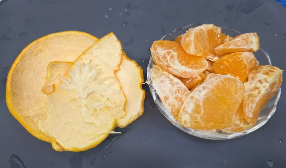 천혜향 얇게 모양 살려서 자르고 껍질은 칼집내 벗겨내고