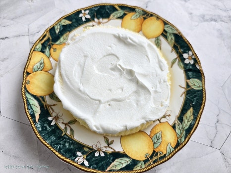 스폰지케익 위에 생크림 바르고