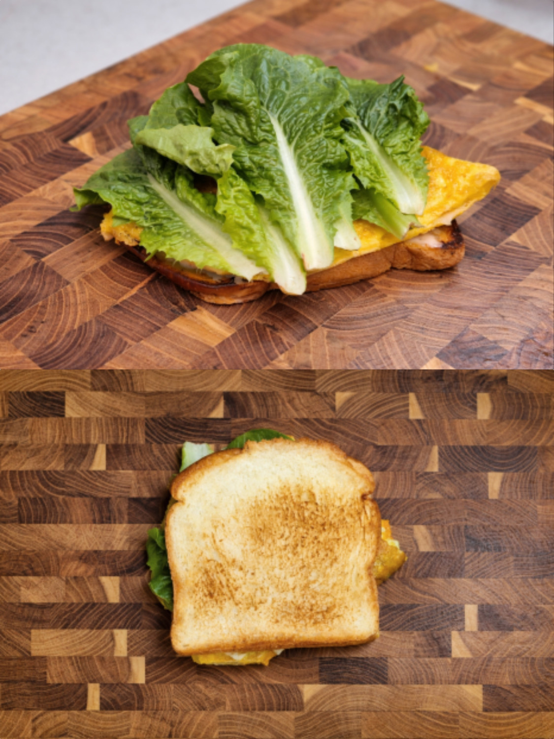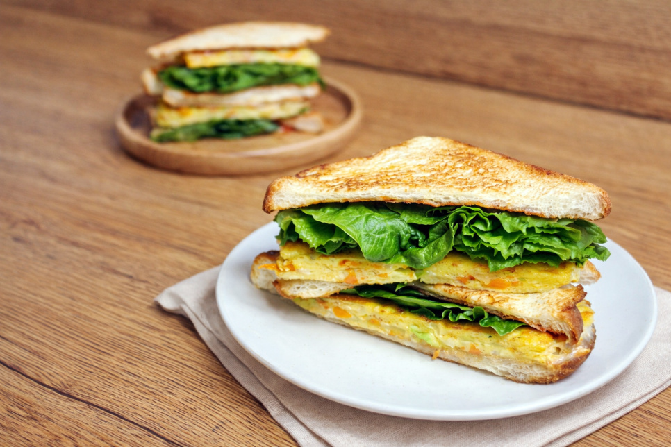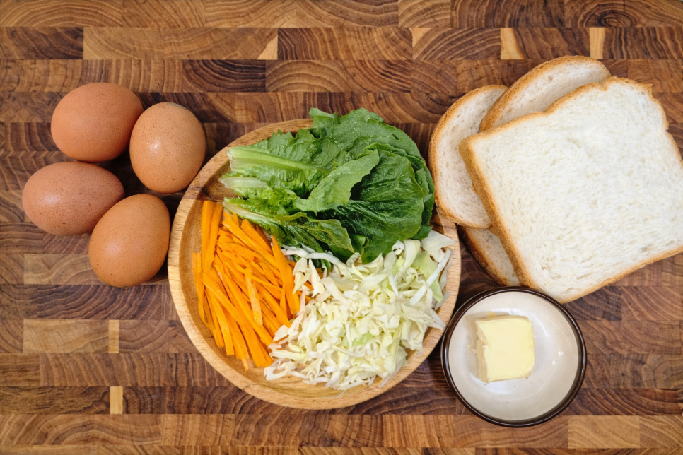 식빵 4장 , 당근 1/4개 , 로메인 10장 , 양배추 100g , 계란 4개 , 설탕 1T , 버터 1T , 케찹 1T , 코울슬로드레싱 2T , 소금 0.7T