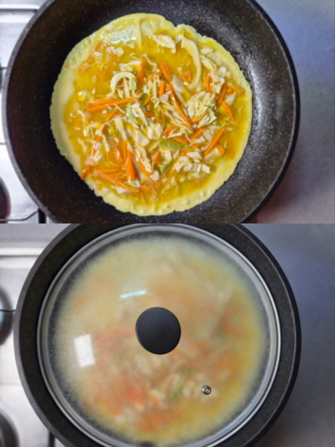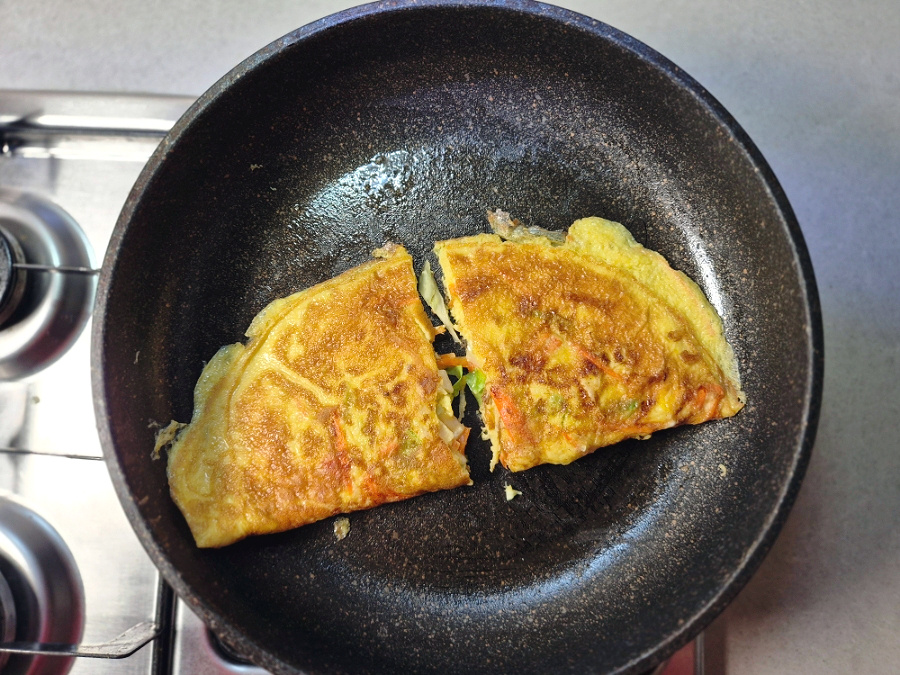 계란물에 채 썬 양배추를 섞어 두툼하게 익혀서 만든