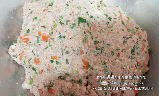 고기까지 넣으셨다면 살짝 아기굴림만두 속을 섞어주세요!