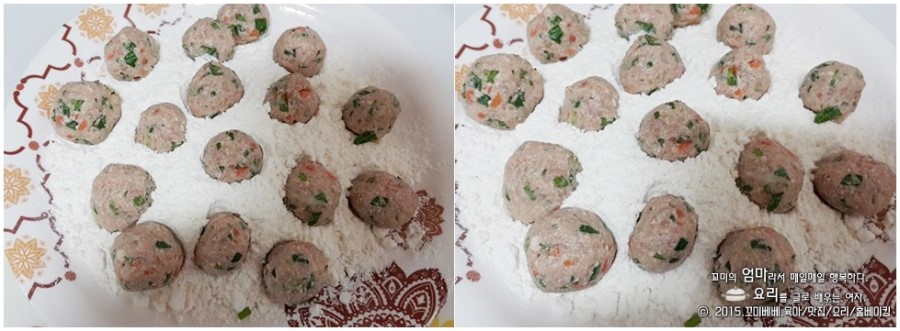굴림만두 만들 때 아마 밀가루 옷이 한두개는 벗겨질 수 있어요!!