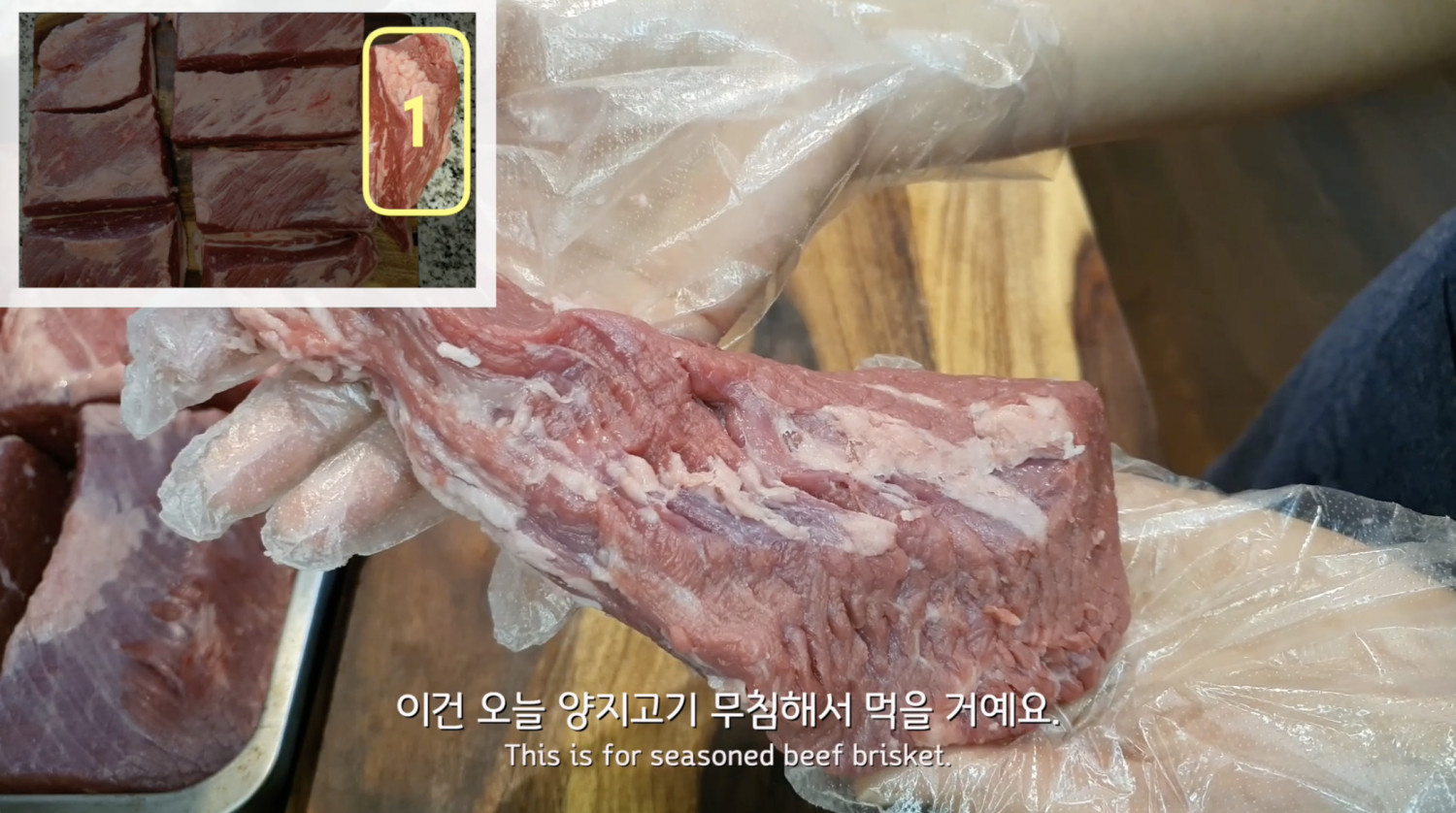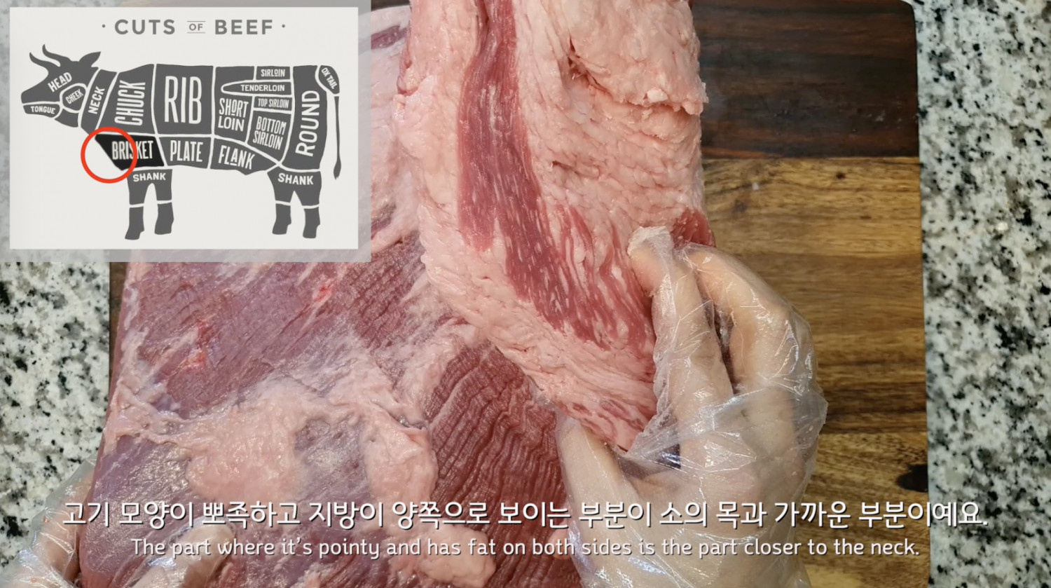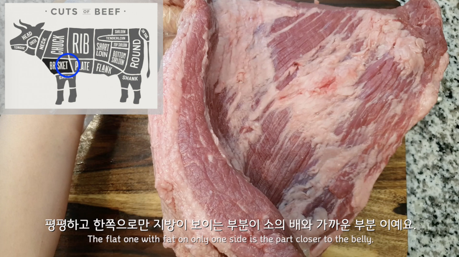 오늘 준비한 고기는 소고기브리스킷이에요.