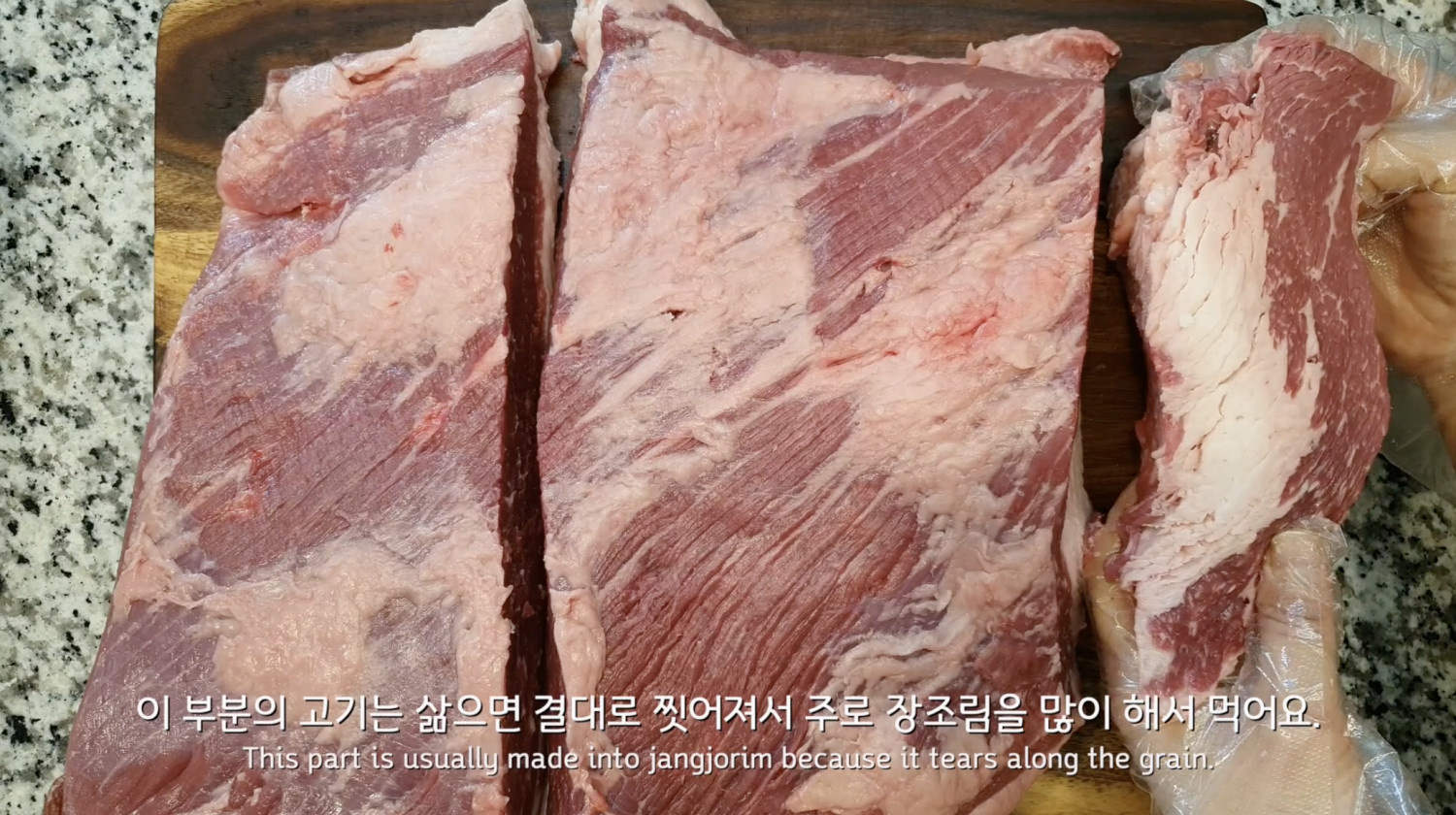 이 부분의 고기는 삶으면 결대로 찢어서 주로 장조림을 많이 해서 먹어요.