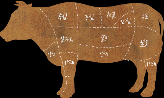 만약, 부쳐 샵에서 고기를 구입하신다면 중간 부분의 고기 모양을 참고하세요!
