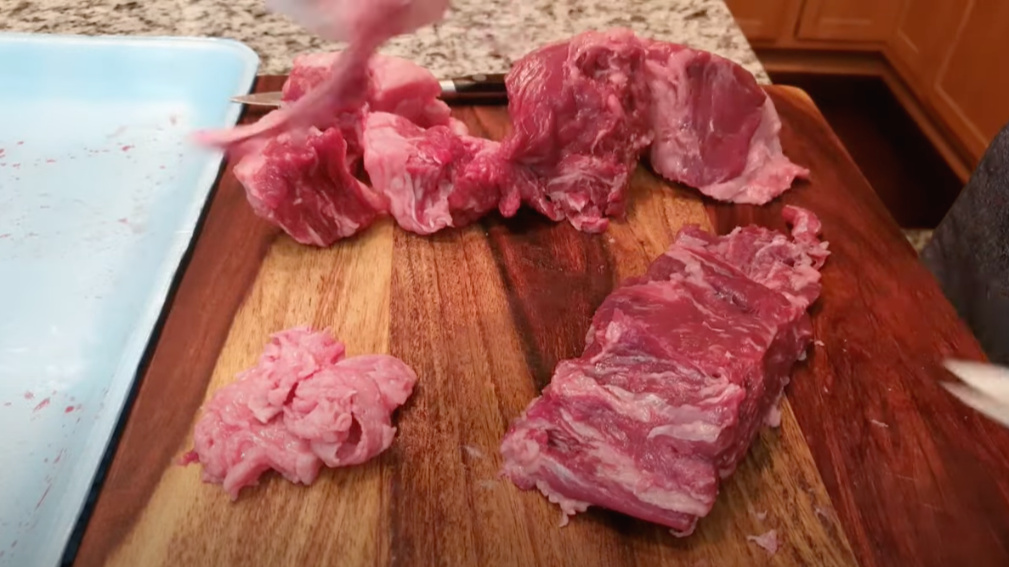 나머지 한 덩어리의 고기도 덧살을 잘라주세요.