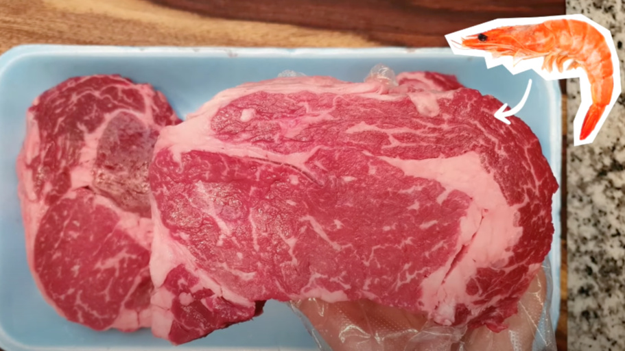 맨 오른쪽에 있는 립아이의 경우, 알등심 크기가 커지고 새우살이 좀 더 작아졌죠?