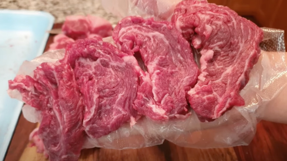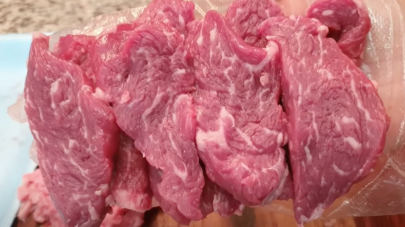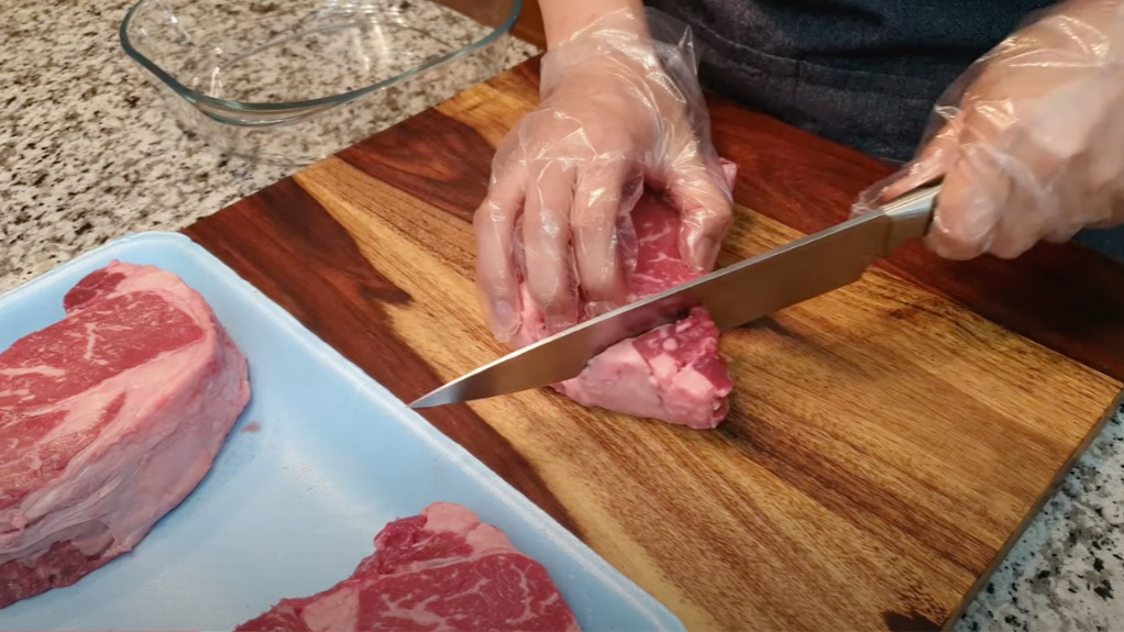 이렇게 잘라내면 스테이크용 고기 손질 완성!