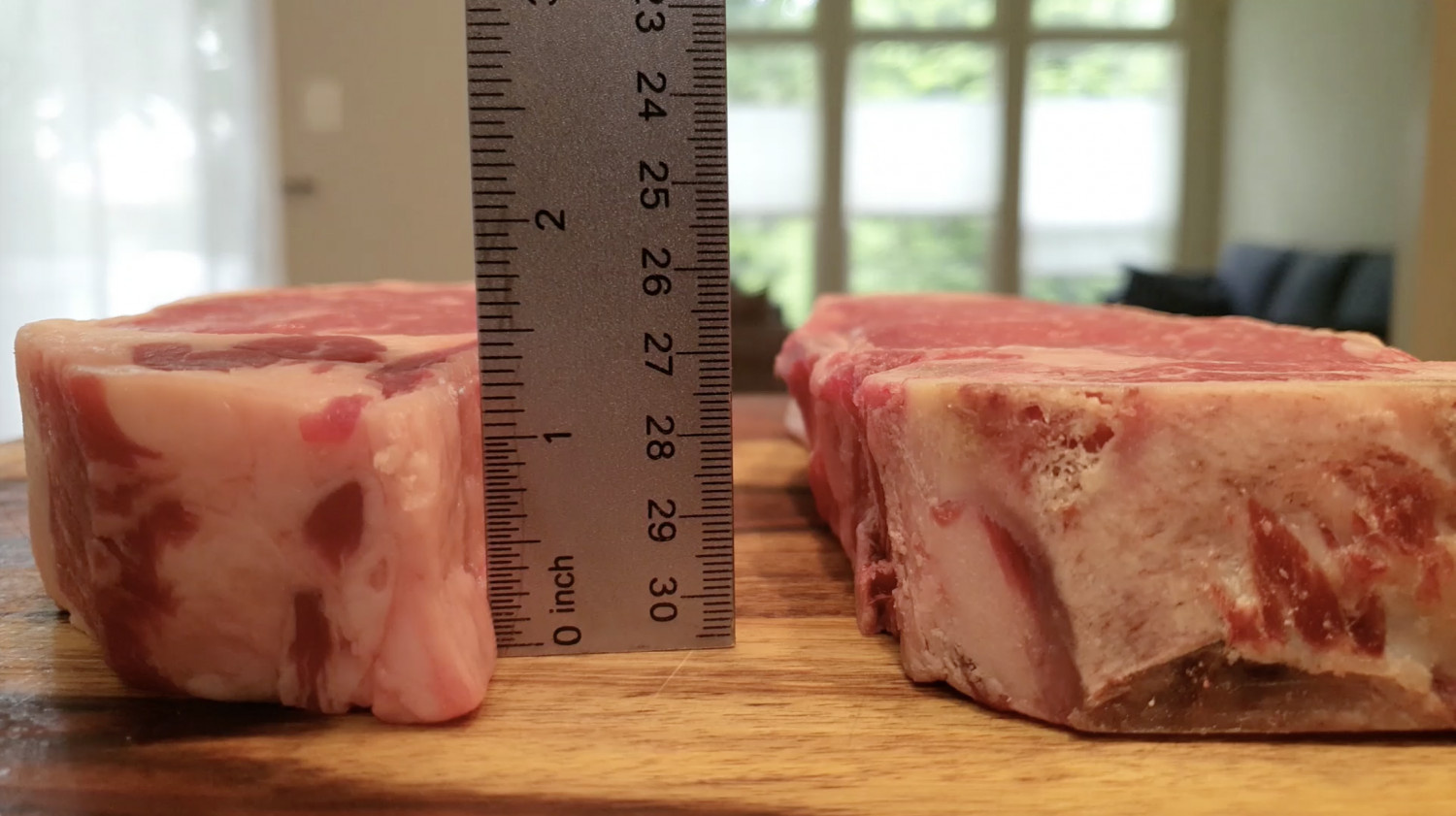오늘 준비한 고기 두께는 1.43인치 (4.5cm)네요.