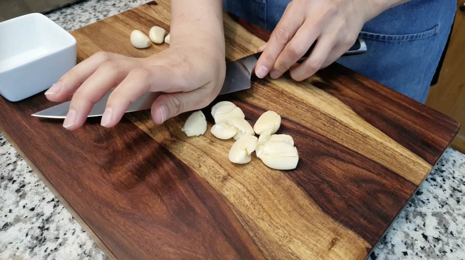 마늘 10알은 칼날을 눕혀 살짝 짓눌러 주세요.