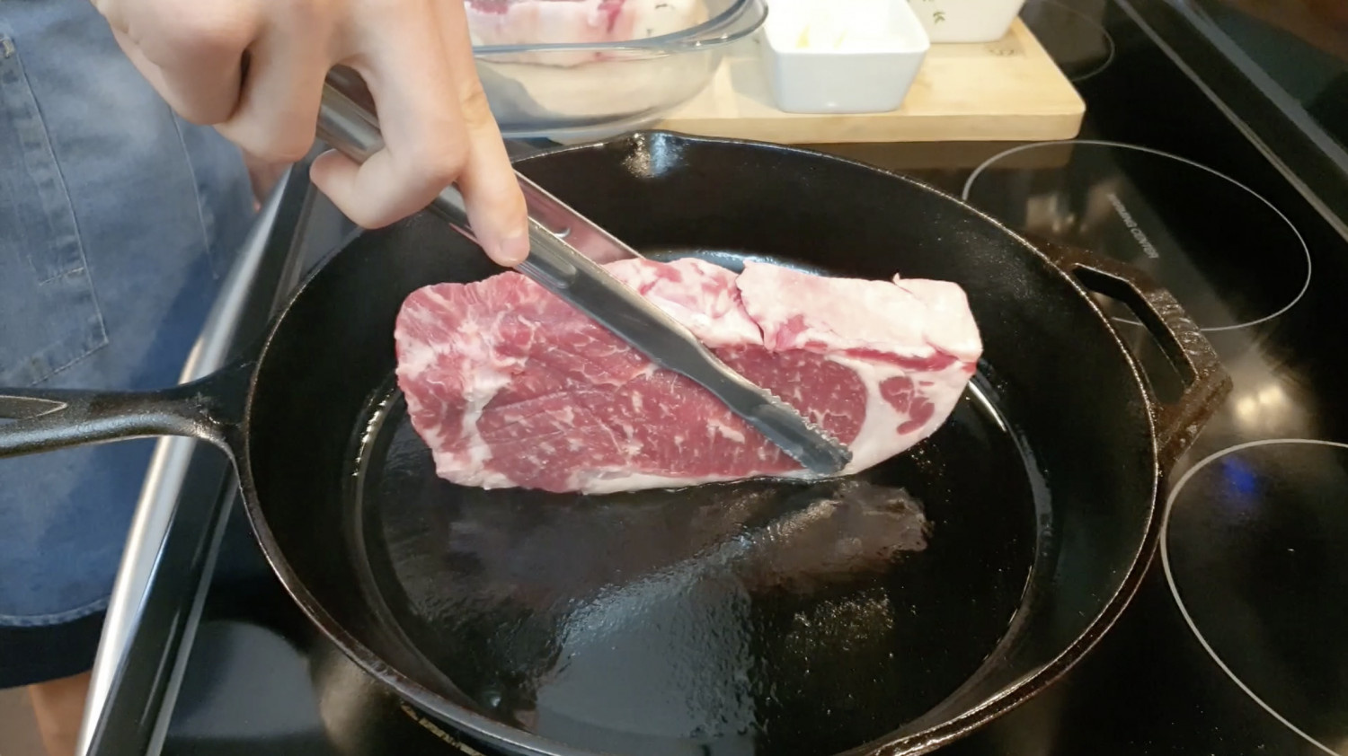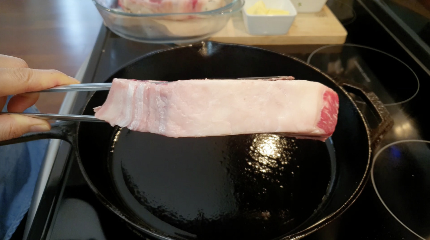 드라이에이징 안한 고기는 지방 부분부터 1분 30초정도 시어링해주도록 할께요.