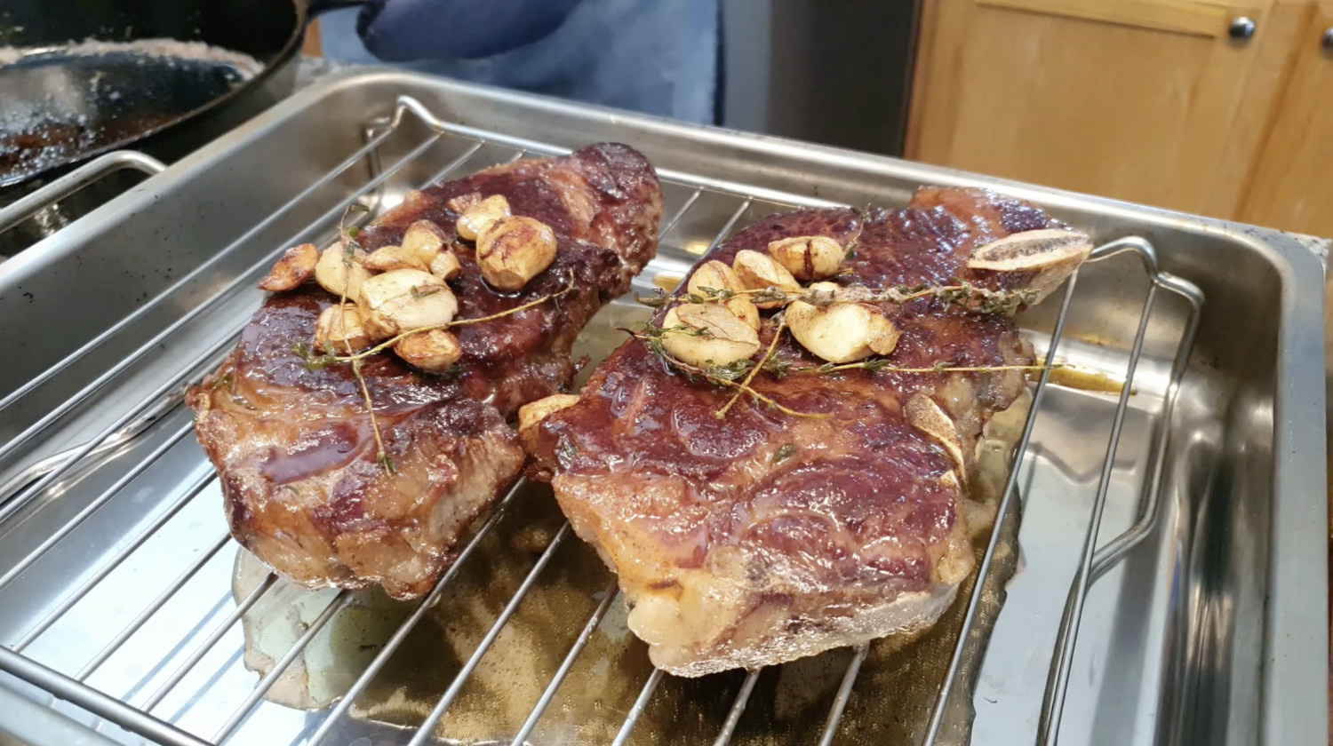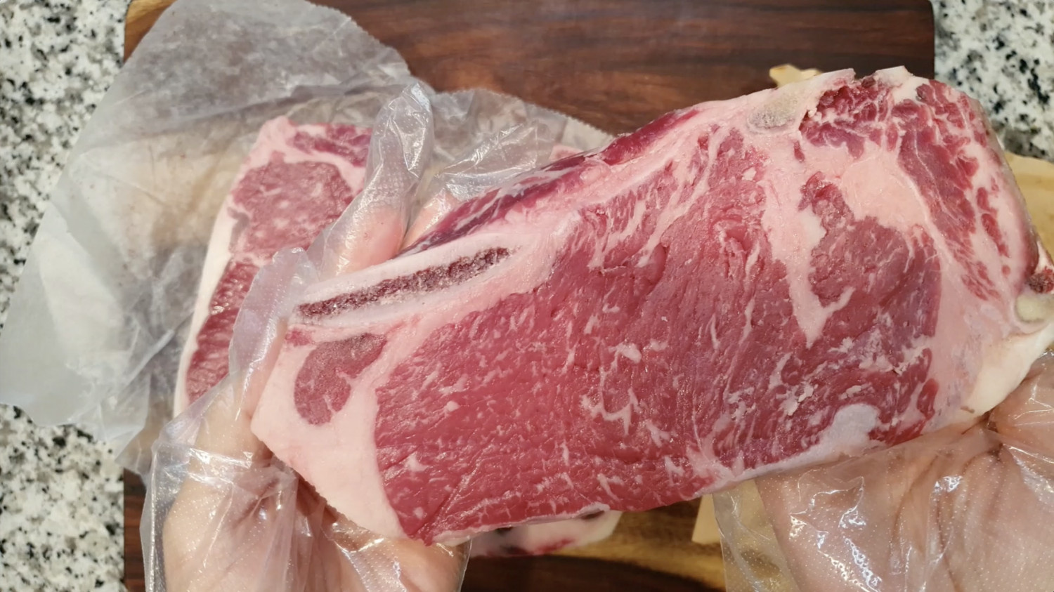 뼈가 수분과 육즙을 가둬 주기 때문에 드리이에이징할 때 뼈를 제거하지 않고 통으로 말려 주거든요.