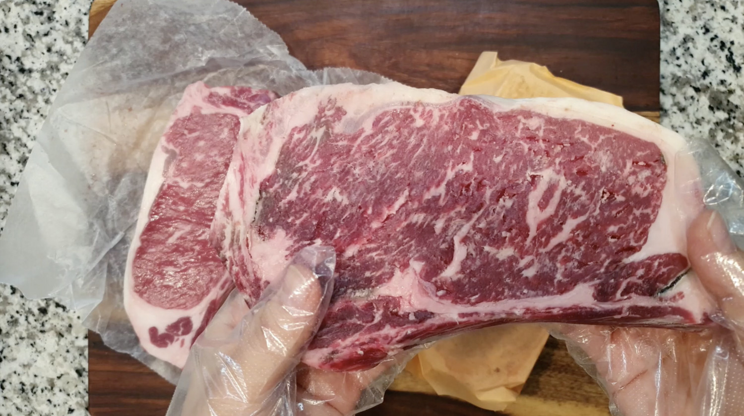 코스트코에서 파는 뉴욕 스테이크랑 진공포장 된 Beef Top Loin이 웻에이징된 고기라고 보시면 돼요.