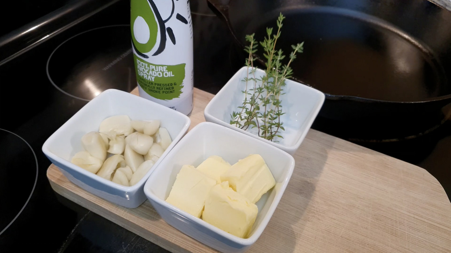 그리고 아보카도 오일, 버터 4조각, 타임 또는 로즈마리도 준비해 주세요.