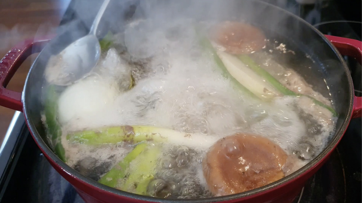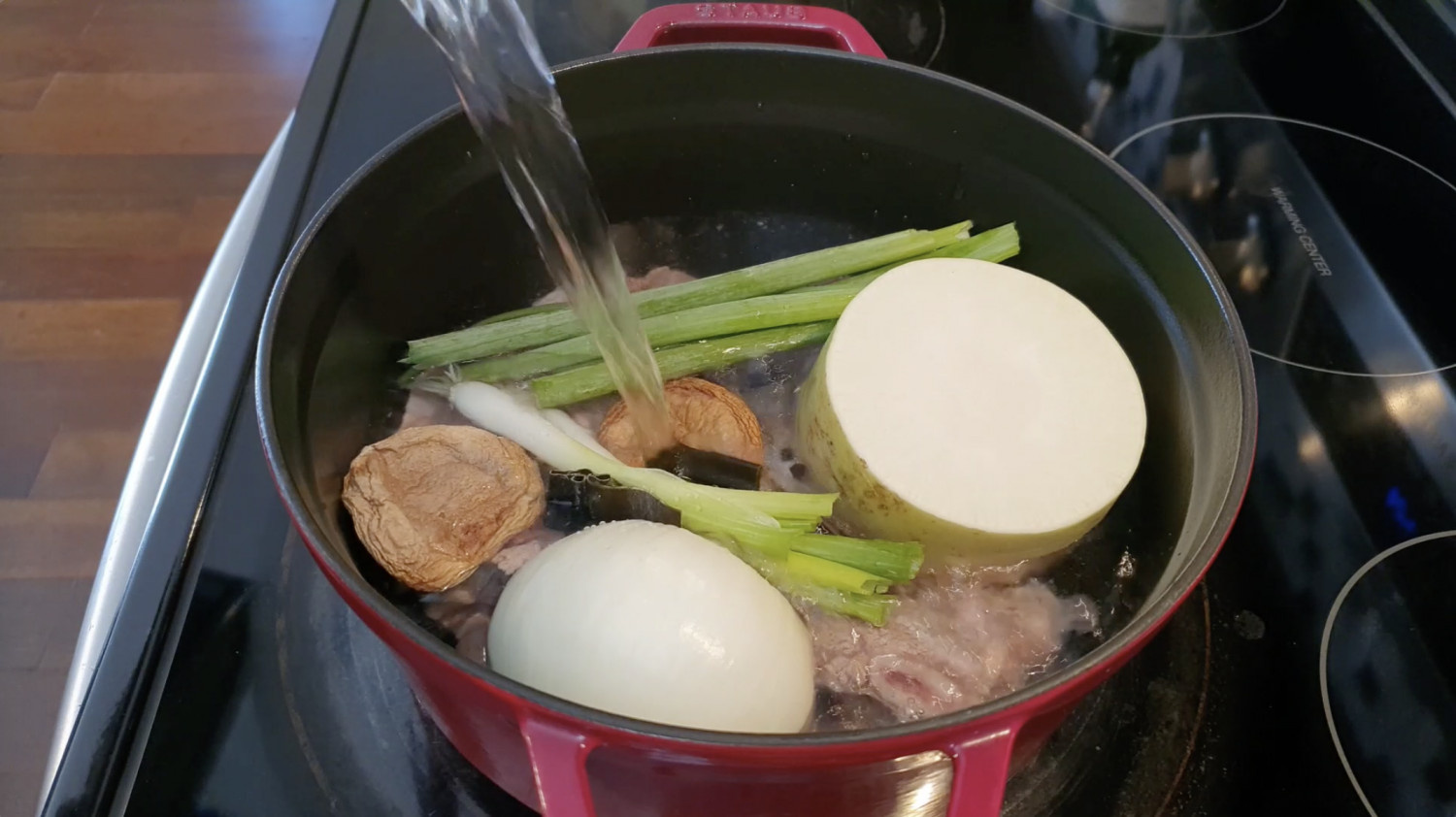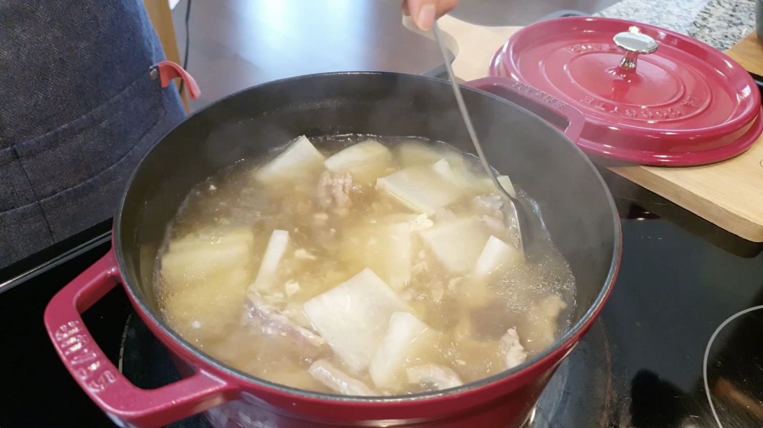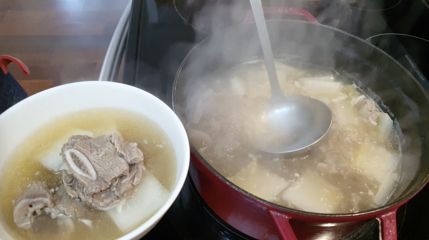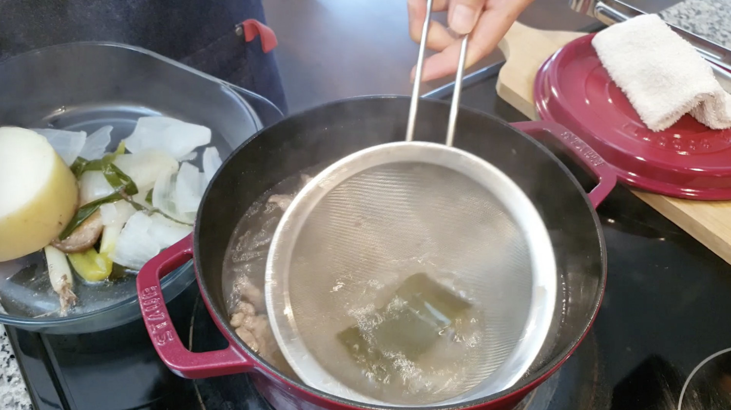 중간에 맑은 국물을 위해 위에 뜬 불순물은 제거해주세요.