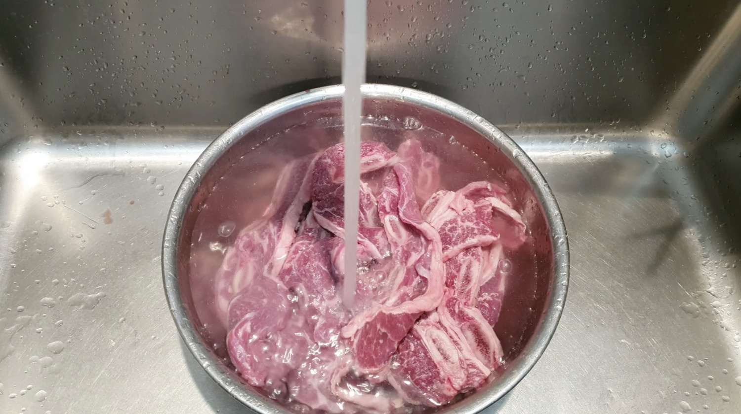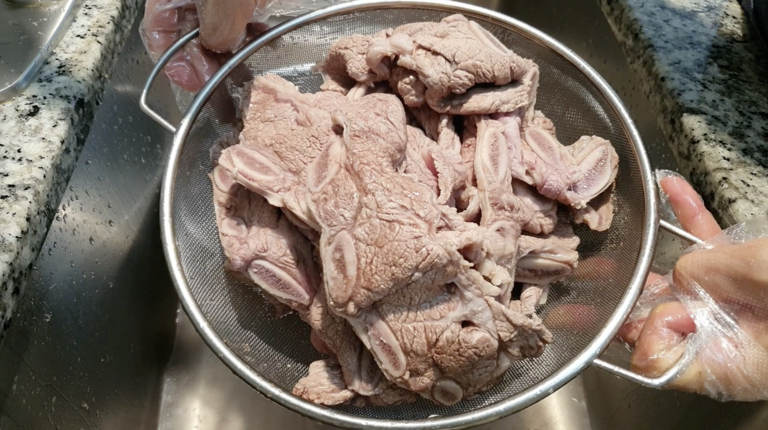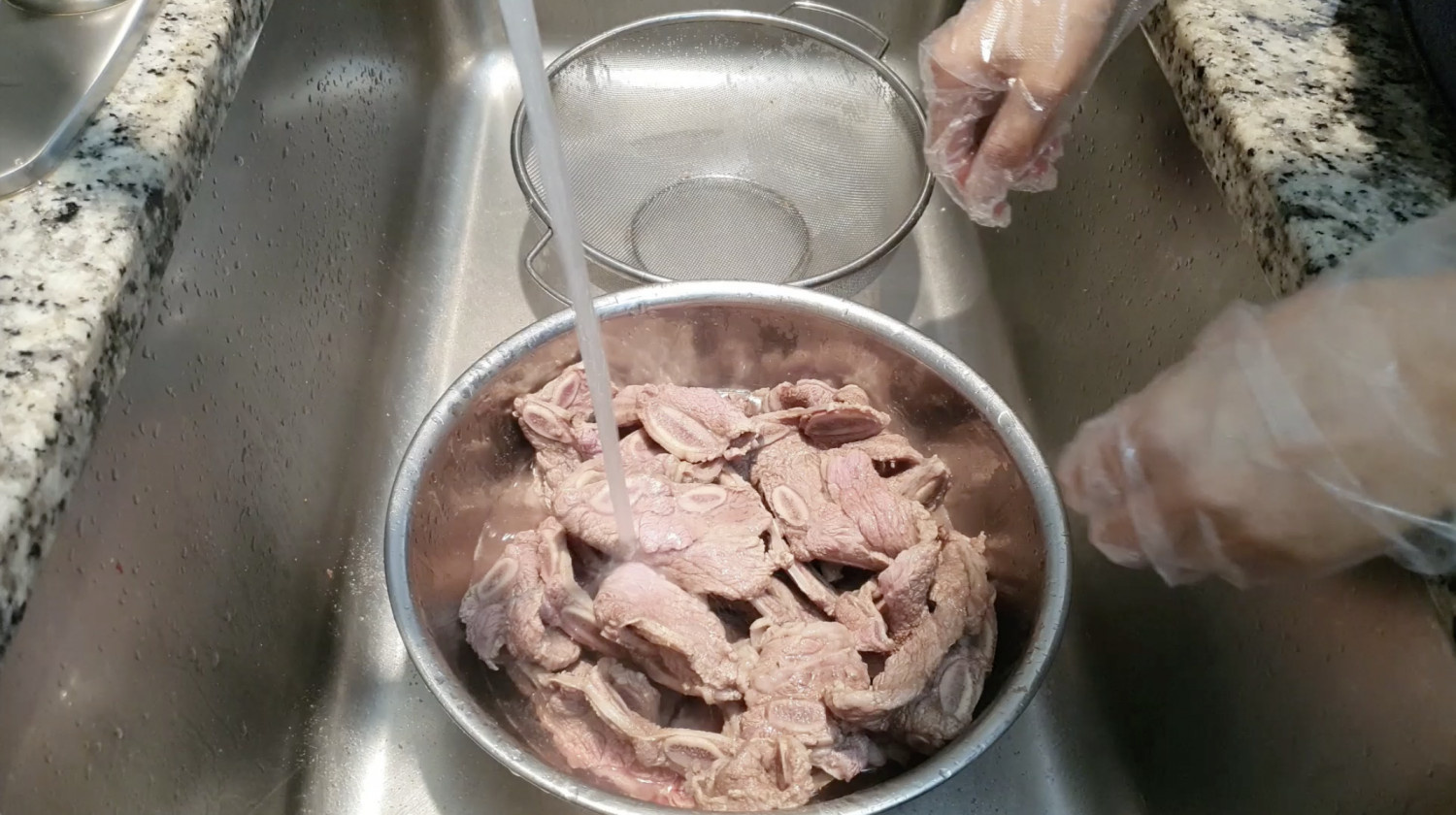 따뜻한 물로 씻어주면 남아있는 지방이 제거돼서 국물이 깔끔해요.