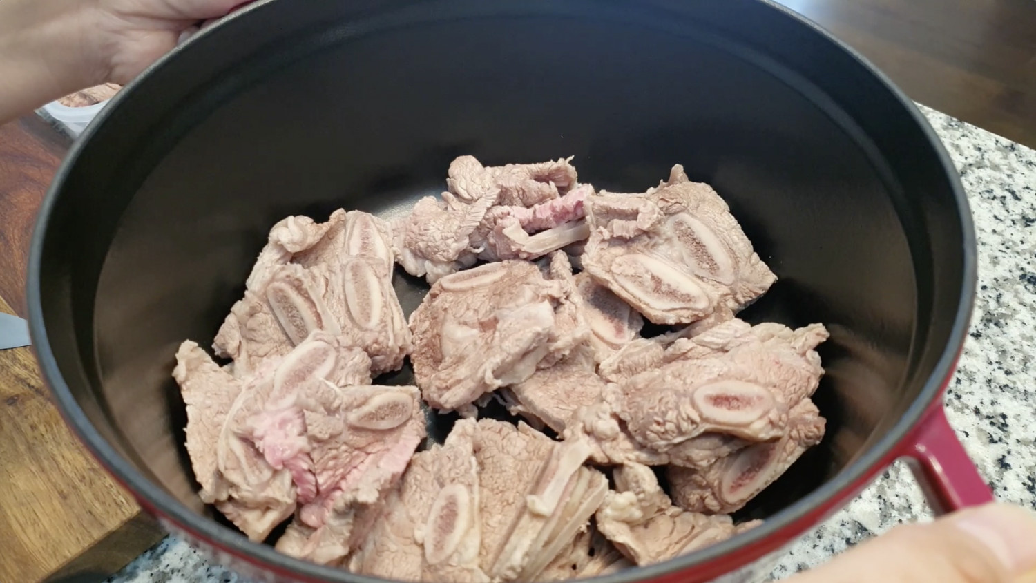 LA갈비 680g을 갈비탕용으로 냄비에 담아주세요.