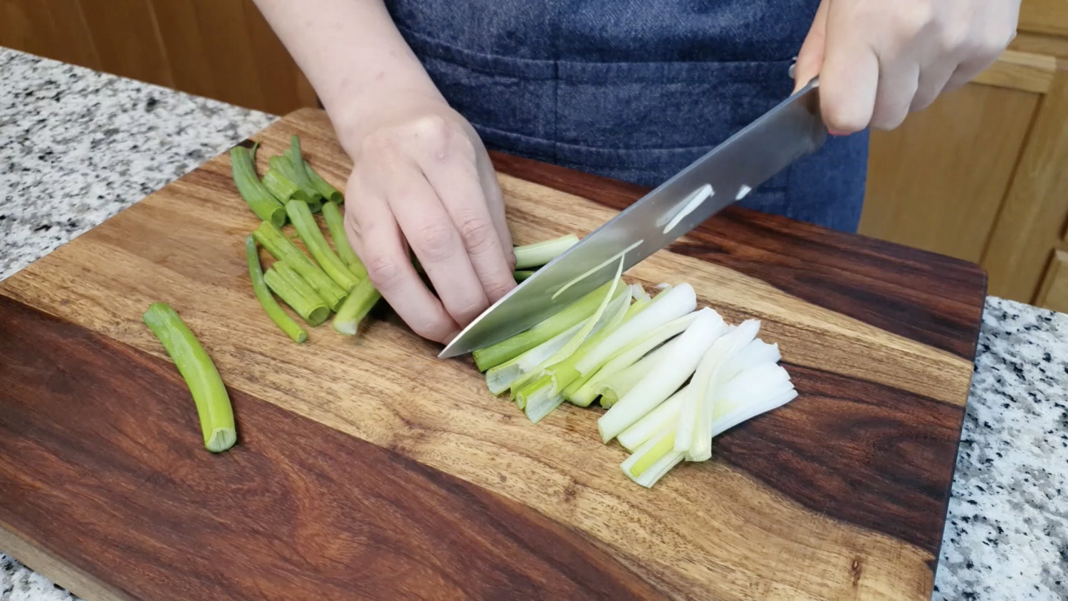 이어서 채썰어 둔 파를 넣고 함께 볶아주세요.