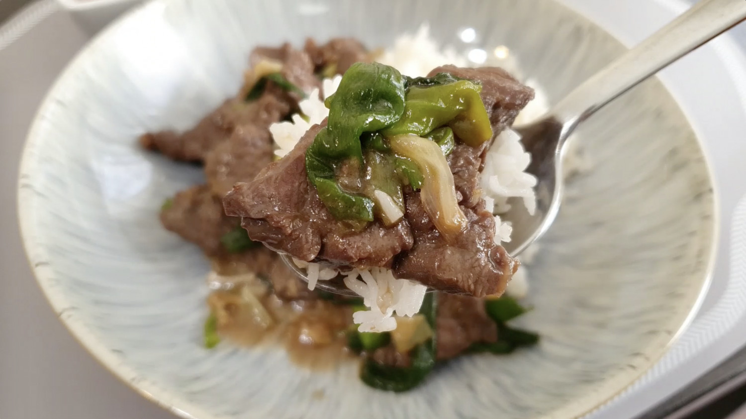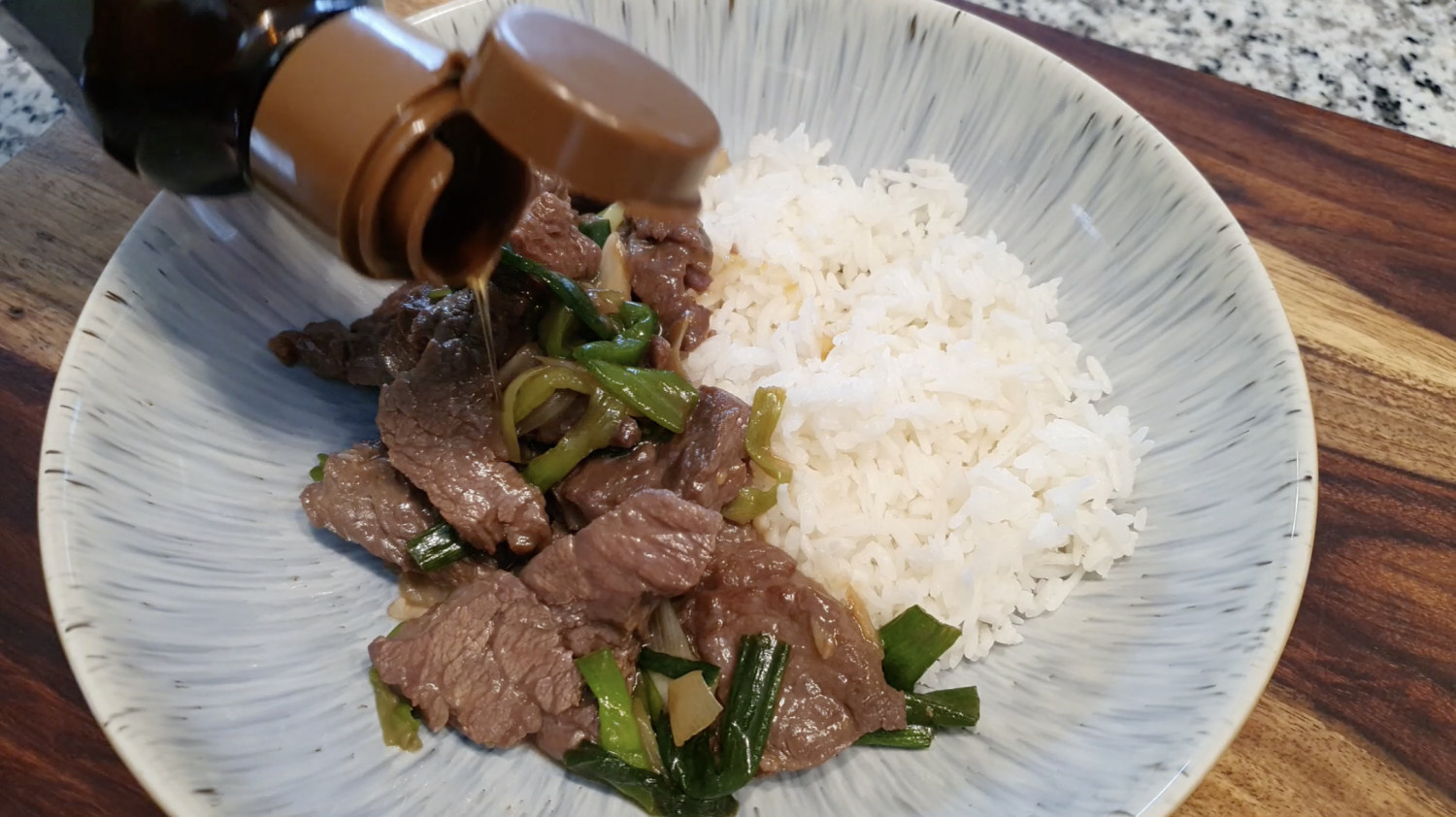 마지막으로 밥 위에 몽골리안 비프를 올리고 참기를을 살짝 뿌려서 드시면...말해 뭐해~