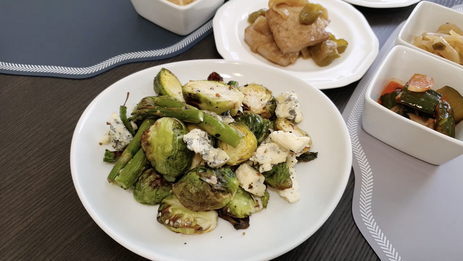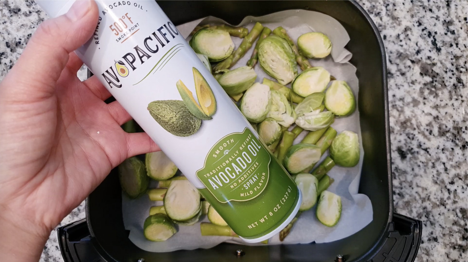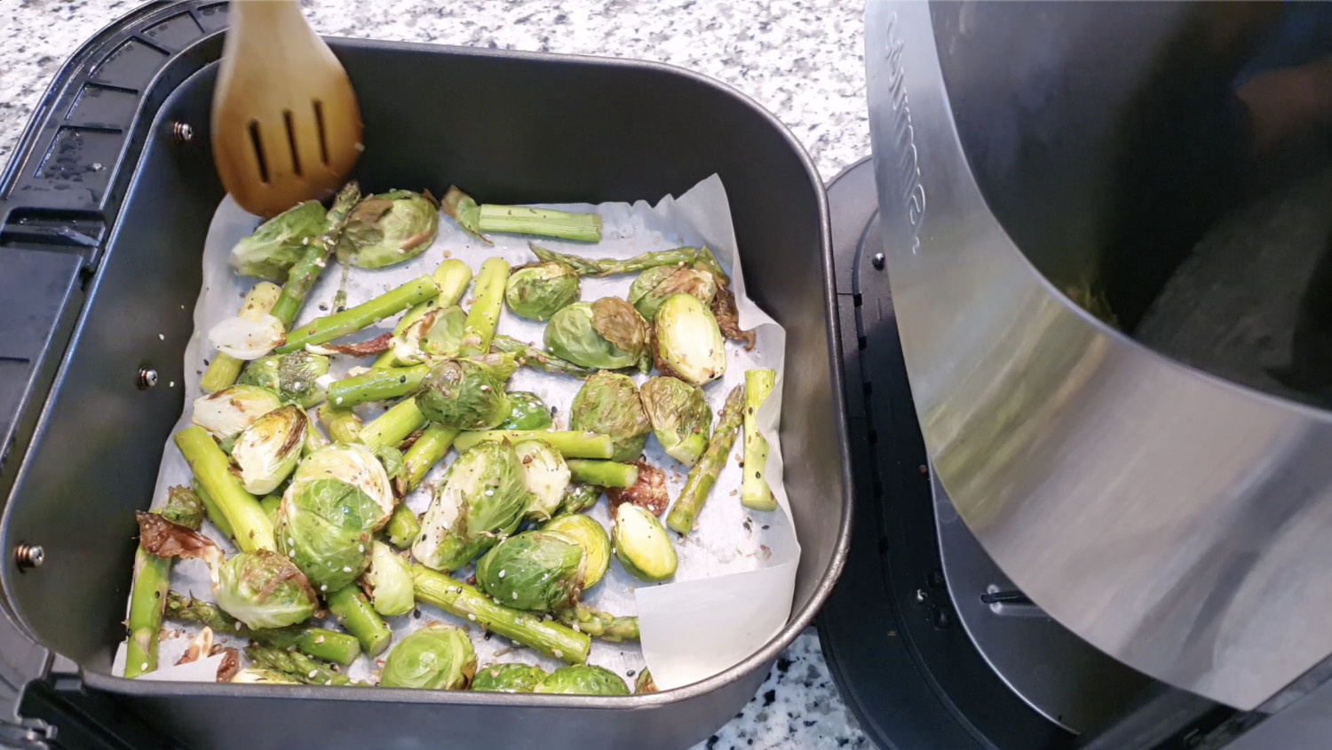 에어프라이어에 아스파라거스, 방울 양배추를 적당한 크기로 잘라 넣어주세요.