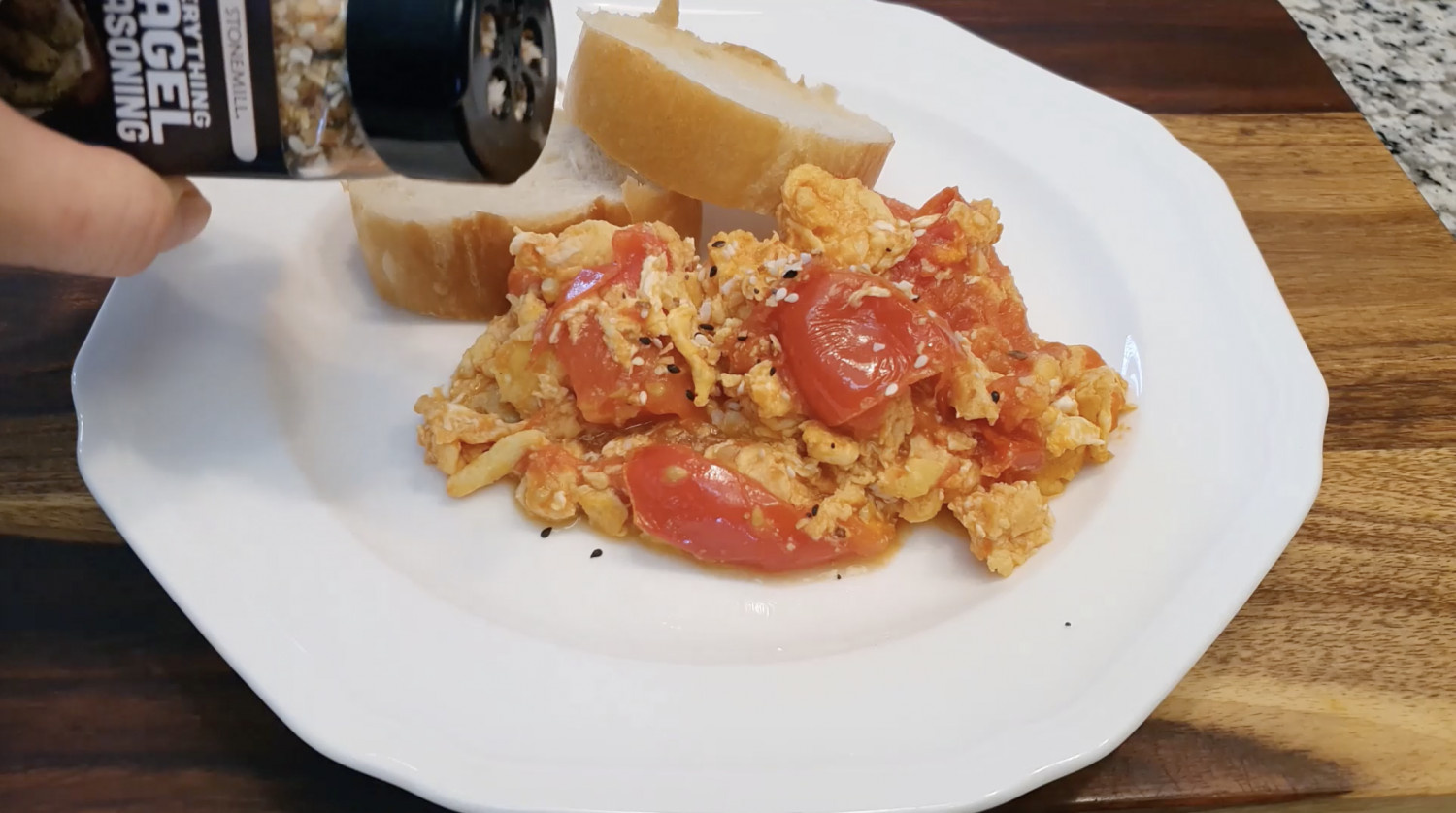 완성된 토마토 계란볶음 위에도 에브리띵 베이글 시즈닝을 톡톡 뿌려주면 훨씬 맛있어요~!