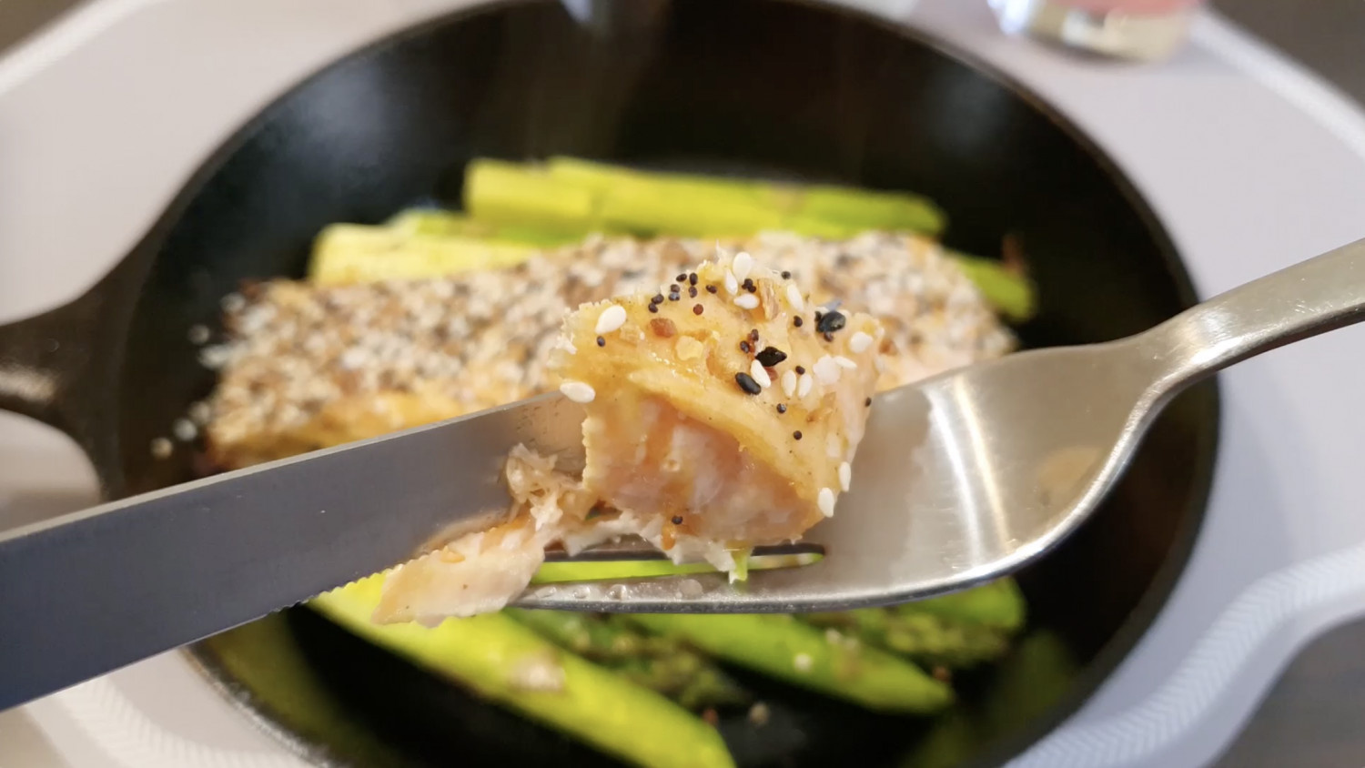 연어는 아주 부드럽고 시즈닝 덕분에 아주 고소해요!
