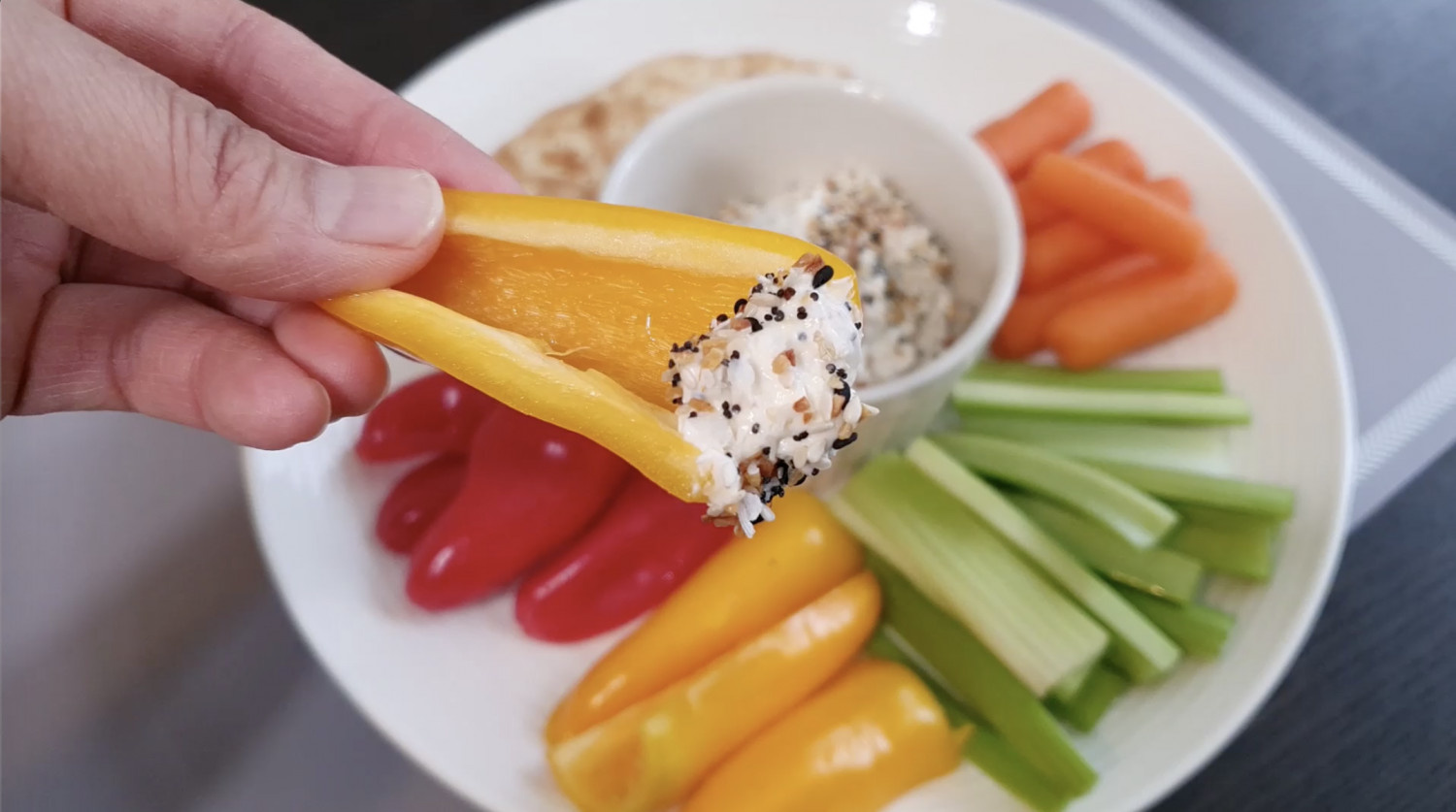 크래커, 미니 파프리카, 샐러리, 당근 등을 준비해서 드셔보세요.