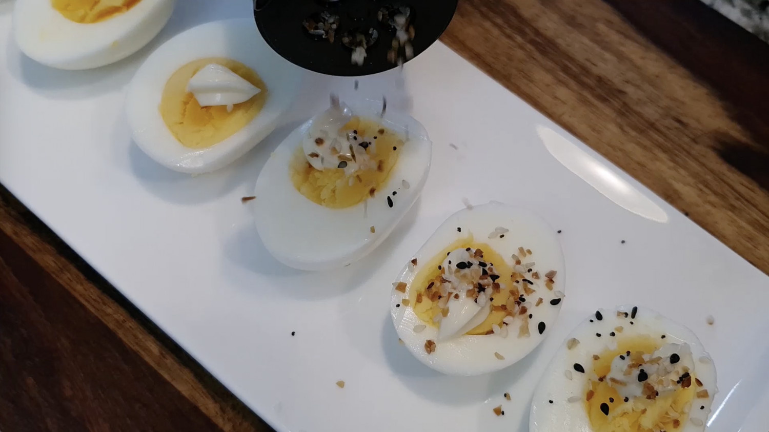 그 위에 에브리띵 베이글 시즈닝을 톡톡 뿌려주시면