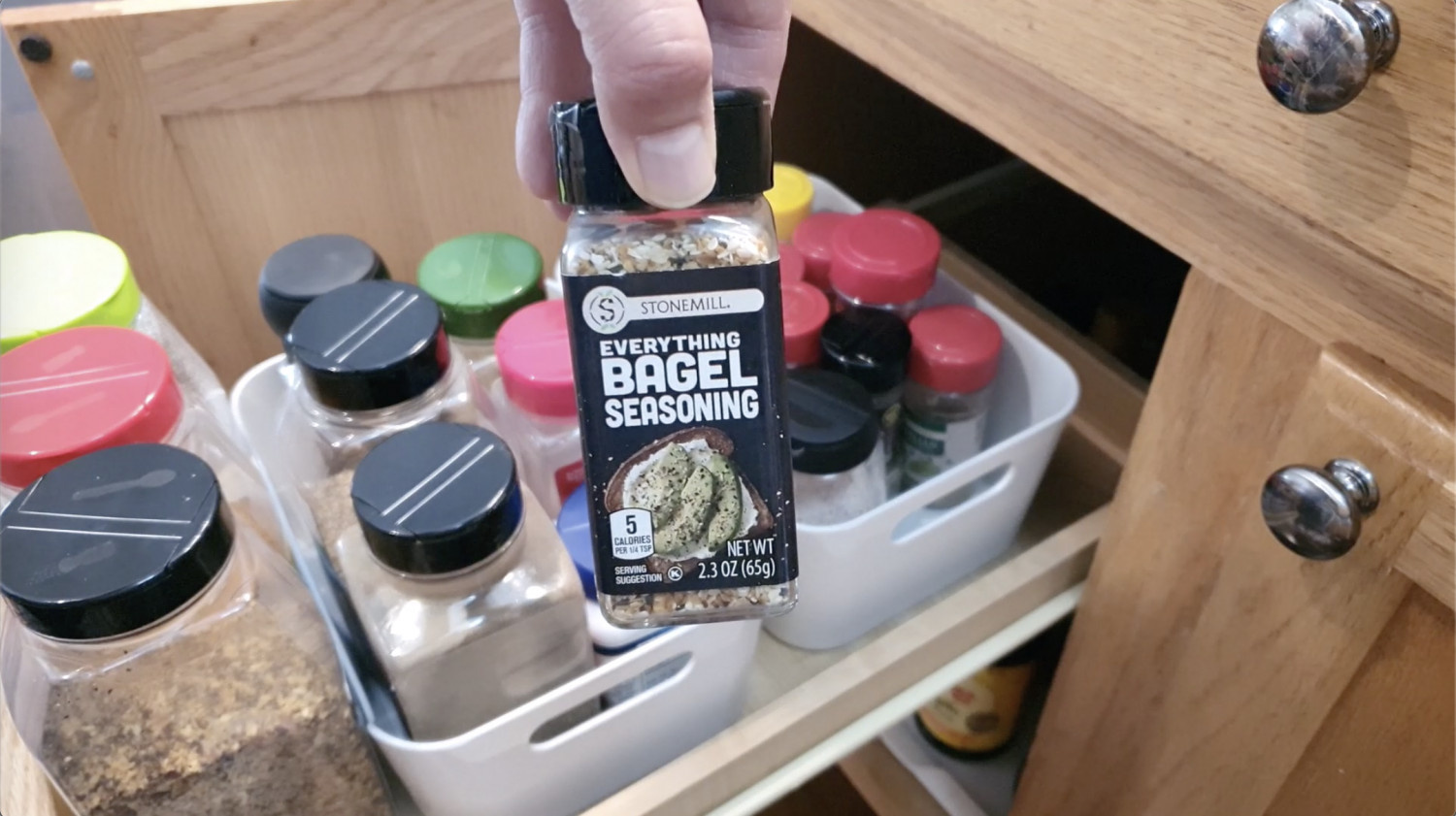 ALDI에서 구매한 에브리띵 베이글 시즈닝이에요. 바삭한 식감에, 깨와 소금이 들어 있어 고소하고 짭짤해요. 그럼 이제 저희 가족이 에브리띵 베이글 시즈닝을 어떻게 먹고 있는지 보여드릴게요~