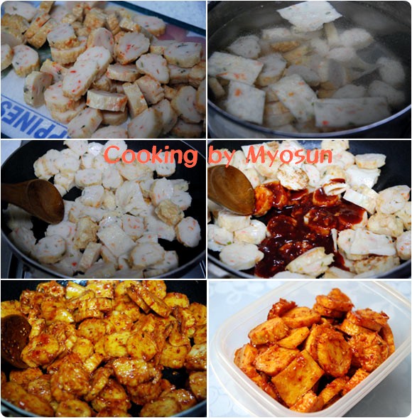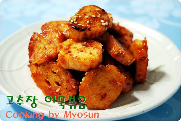 어묵 반찬 많이 드시죠? 어렸을 때나 지금이나 이 어묵 반찬은 왜이렇게 많있은지..ㅎㅎ 사실 어묵이라고 부르는 것 보다 '오뎅뽀끔'이라고 해야 이상하게 더 맛있는거 같아요. 하지만 이곳은 여러사람이 쓰는 곳이니 표준말을... 간장 넣고 깔끔하게 볶아도 맛있구요, 오늘은 고추장, 물엿 넣고 달달하고 약간 매콤한 맛이 나게 조려보았어요. 고추장이 들어갔다고 하나 아이들이 먹기에 전혀 맵지 않아요~~ 고추장이 들어가면 간장으로만 졸였을 때보다는, 좀 느끼한 맛이 덜한 것 같기도 하구요. 아무래도 어묵이 기름에 튀긴 것이다 보니... 그때 그때 당기는 맛으로 즐겨보세요. 준비물 : 오뎅 500g(똥그란 오뎅, 넙죽한 오뎅 다 좋아요), 통깨 약간 양념장 : 맛술 2큰술, 진간장 1큰술, 고추가루 반큰술, 고추장 1큰술, 물엿 1큰술, 설탕 1작은술, 참기름 반큰술, 다진 마늘 반큰술 만드는 방법 1. 양념장은 미리 한꺼번에 섞어주세요. 2. 어묵을 먹기 좋게 썰구요~ 전 즉석 어묵을 사서 끓는물에 한번 데쳤습니다. 기름기도 빠지고 깨끗하게 손질하는 방법이에요. 저도 어떤 생활의 지혜에서 봤는데요, 시판 어묵에는 방부제가 있을 수 있으니 끓는물에 데친후에 미지근한 물에 살짝 담궈 두면 좋다고 하네요. 3. 물기를 뺀 어묵을 후라이팬에 기름을 한큰술 두르고 중불에 살살 볶아주세요. 4. 섞어두은 양념장을 어묵에 넣고 잘 버무리면서 중약불로 볶아주세요~~ 5. 양념이 어묵과 잘 붙고 졸아들면, 통깨를 뿌리시고 마무리 하면 끝~!